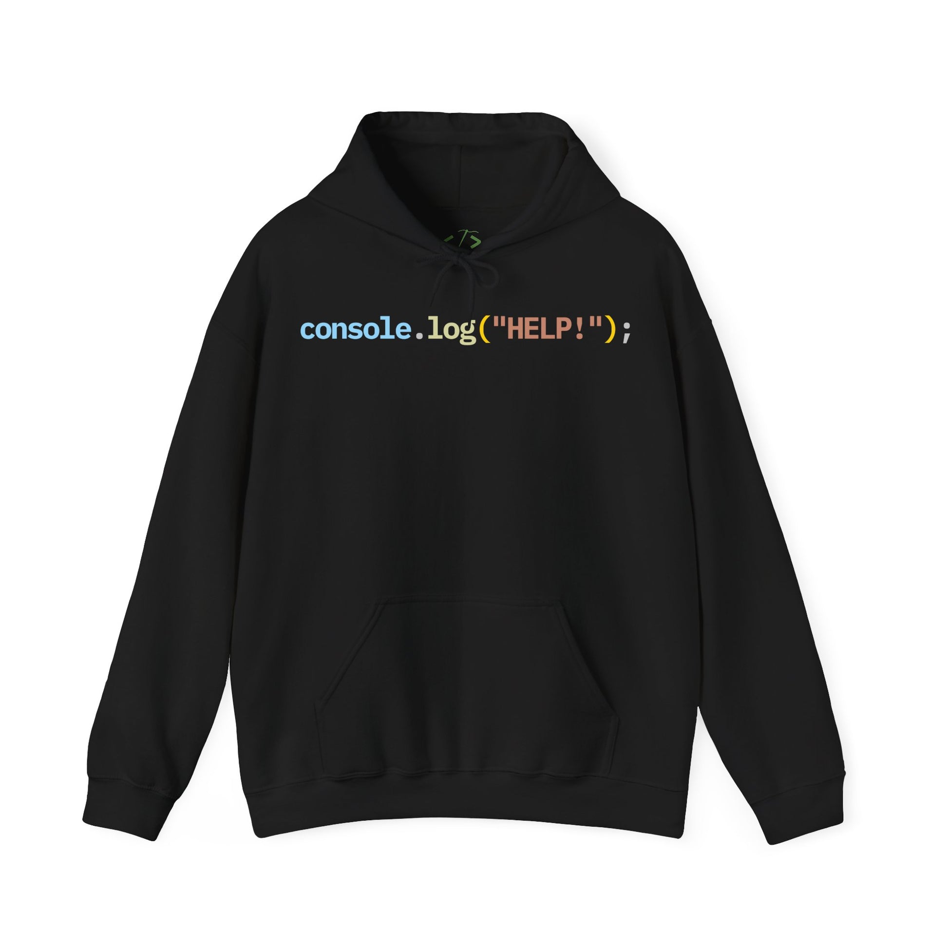 Level up your debugging style with our console.log("help"); Hoodie. This developer debugging hoodie combines comfort and clever design, perfect for every coder. Grab yours today!
